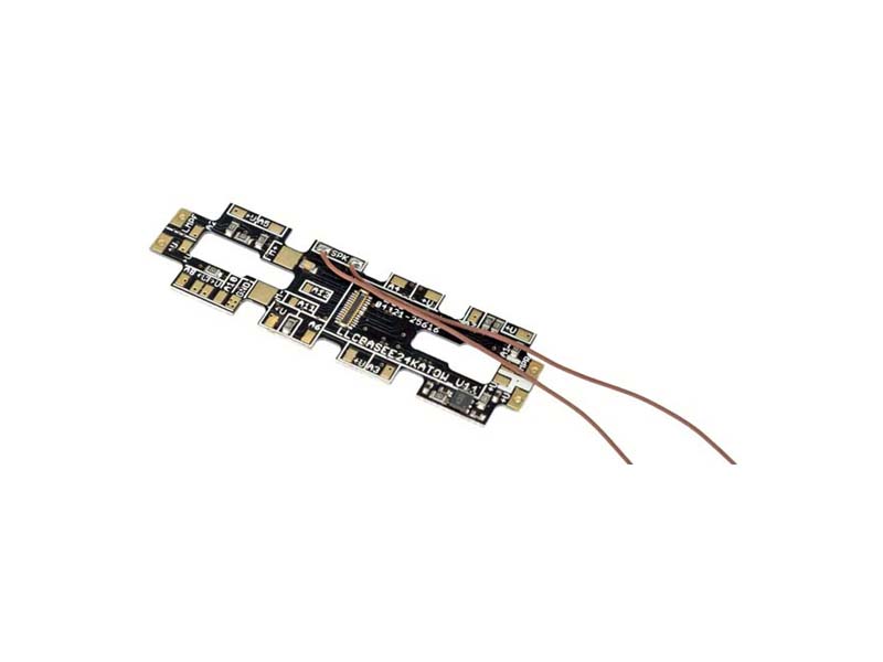 Tato adaptérová deska o rozměrech 47,5 mm x 14,0 mm je určena do lokomotiv Kato (USA) o rozchodu N, které mají širokou skříň (původně nazývanou také Wide-Body), jako například F-Units. Nahrazuje původní desku plošných spojů a má připojovací plošky pro motor a kolejnici, stejně jako funkční výstupy AUX1, AUX2, AUX3, AUX4, AUX5, AUX6, AUX7 a AUX8. K rozhraní E24 lze zapojit buď LokSound 5 Nano, nebo LokPilot 5 Nano. Samozřejmě jsou k dispozici také připojovací plošky pro ESU PowerPack. Není vhodné pro děti do 14 let.
