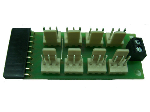 Adaptér KON1 je doplňkový modul elektroniky Zhlavík V2 a jeho dalších mutací. Slouží k usnadnění a zrychlení montáže. Je určen pro napájení návěstidel, vybavených dekodérem Scom nebo optických senzorů SN1C. Připojením KON1 ke Zhlavíku získáte 8 shodných vstupů/výstupů a připojení k jednotlivým perifériím se děje pomocí třížilových vodičů s konektory. Napájení: 12VDC , Proudové zatížení: max. 100mA.