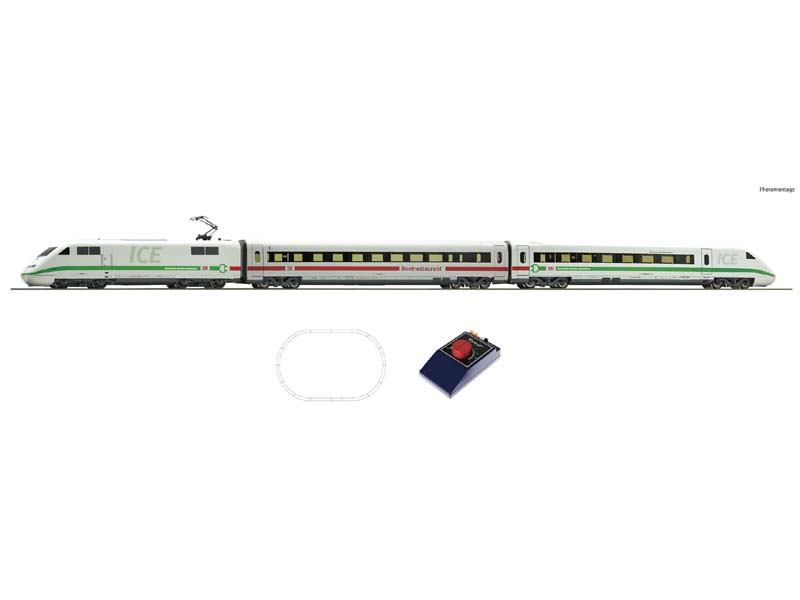 Analogový set obsahuje 1 motorový vůz, 1 restaurační vložený vůz, 1 řídící vůz a ovál s kolejí ROCO LINE s podložím skládající se z: 12 obloukových kolejí R2, 3 přímých kolejí G1, 1 přímé koleje G1/2, 1 napájecí koleje (G1/2). Dále je obsahem 1 elektronický ruční ovladač a 1 zásuvný napájecí zdroj. Minimální potřebná plocha: 150 x 100 cm. Měřítko zkrácení vozidel 1:100. Určeno pro modeláře a sběratele starší 14 let.
