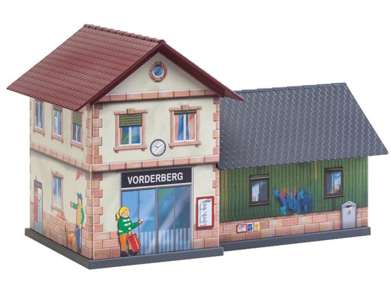 Stavebnice nádraží pro nejmenší začínající modeláře. Nádraží si mohou vybarvit podle svých představ.