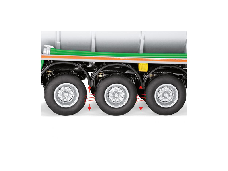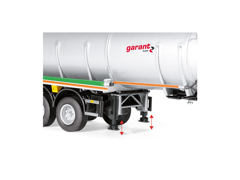 Model návěsu v měřítku 1:32 je vyroben ručně, četné komponenty jsou odlity z tlakově litého zinku a plastu a jsou smontovány s vysokou přesností. Po odpojení lze cisternový návěs snadno umístit na výsuvné podpěry. V zadní části lze pohybovat propojovacím potrubím a simulovat tan plnění a vyprazdňování. Ovládací panel lze stejně snadno otevřít a zavřít. Aby byla zaručena manévrovatelnost jako u předlohy, je zadní náprava navržena jako řiditelná. Nápravy jsou odpružené s možností znázornění funkce zvedací nápravy.