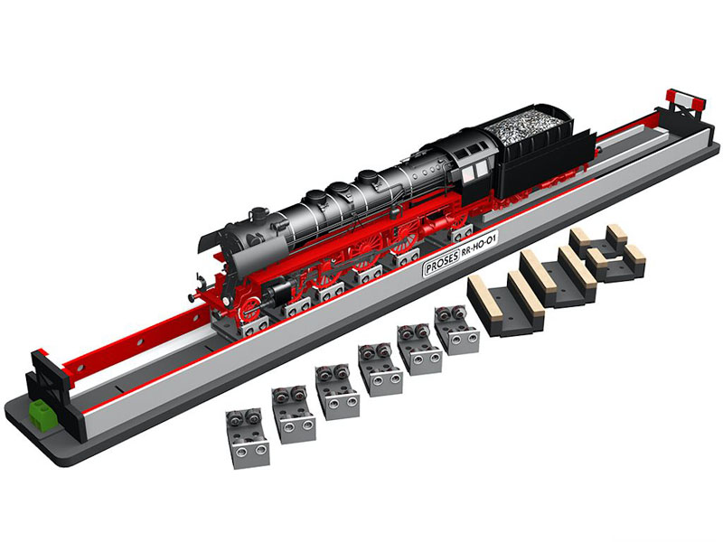 Tato čistící kolej se skládá ze dvou hliníkových kolejnic o rozchodu 16,5 mm a ochranných nárazníků na obou koncích. Díky délce 500 mm je možno čistit libovolné vozidlo H0. Sada obsahuje 6 podstavců s ložisky pod dvojkolí a 4 čistící proužky.