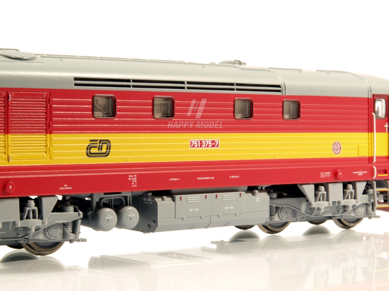 Řada 751 je dieselelektrická univerzální lokomotiva. V letech 1966 až 1971 bylo v závodě ČKD v Praze vyrobeno pro ČSD celkem 230 lokomotiv této řady. Lokomotiva dosahuje maximální rychlosti 100 km/h. Šestiválcový přeplňovaný motor poskytuje výkon 1500 koní. Její pole působnosti sahalo od mezinárodních rychlíků po osobní vlaky a od těžkých nákladních po „sběrné“ (posunovací nákladní vlaky). Daly se najít i v pohraničních stanicích okolních států. Vyčnívající „prsa“ pod předními okny jí rychle vysloužila přezdívku „Bardotka“, volně po Brigitte Bardot, francouzské herečce. Provedení 3. výrobní série s prolamovanými bočními stěnami až po okraj střechy, přiloženy leptané tabulky. Vestavěný digitální dekodér se zvukovým modulem. Funkční osvětlení LED, měnící se v závislosti na směru jízdy. Minimální poloměr oblouku R2. Provozní číslo 751 375-7. Kinematika krátkého spřáhla se šachtou dle NEM. Určeno pro modeláře a sběratele starší 14 let.