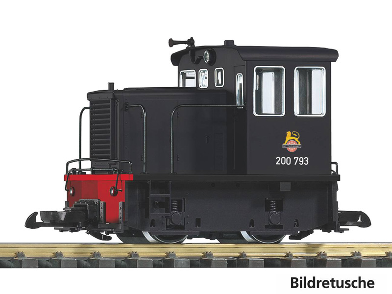 Americká dieselová lokomotiva GE25 v barvách British Railway. Jemný, ale robustní design. Minimální poloměr oblouku 600 mm. Není vhodné pro děti do 14 let.