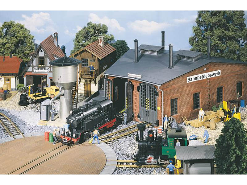 Der Bausatz enthält alle notwendigen Teile, um den Ringlokschuppen (Art. 331750) um jeweils einen Stand zu erweitern. Tato stavebnice obsahuje: .Obtížnost: Střední.