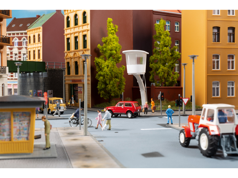 Silný nárůst masové motorizace v 60. letech 20. století vyžadoval bezpečné sledování a řízení dopravy na klíčových křižovatkách ve velkých městech. Tyto věže sloužily k pozorování a řízení dopravy. Z předlohy našeho modelu bylo možné podle potřeby ručně zasahovat do řízení světelné signalizace tramvajové, trolejbusové a automobilové dopravy. V případě výpadku technologie řídil dopravu běžným způsobem dopravní policista na podstavci uprostřed křižovatky. Oba scénáře lze napodobit pomocí přiložených nenabarvených figurek. Originální model. Určeno pro modeláře od 14 let.