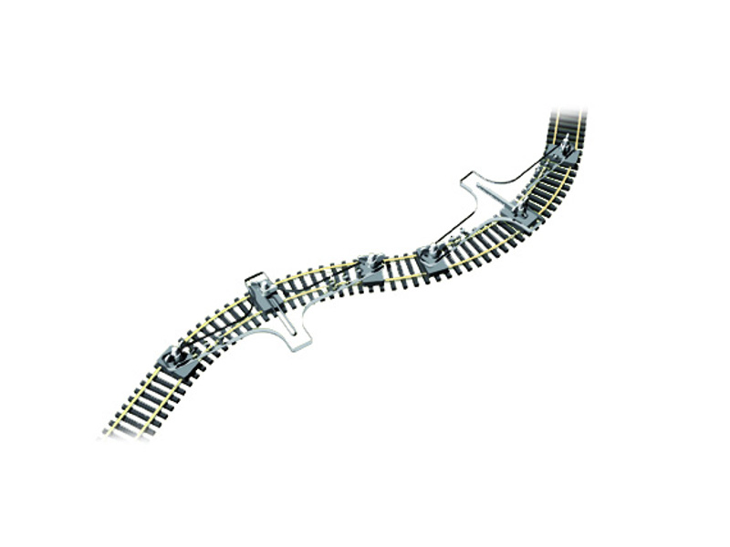 Flexibilní kolej je velmi užitečná, ale její tendence narovnat se ztěžuje její pokládání. Tento nový nástroj drží kolej trvale v požadovaném tvaru až do doby, než jí připevníte nebo než zaschne lepidlo. Určeno pro všechny typy kolejiva N. Balení obsahuje dva držáky.
