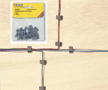 Držáky lze přilepit k rámu kolejiště. Balení obsahuje 20 držáků. Nevhodné pro děti do 15 let.