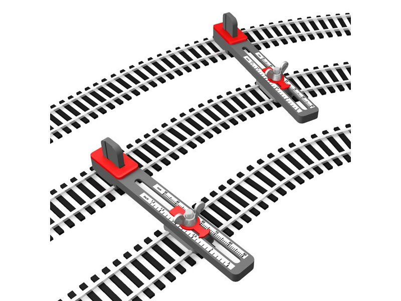 Držáky jsou vhodné pro všechny typy kolejí ve velikosti H0 a 00. Tento velmi užitečný nástroj je výborným pomocníkem při tvorbě dvojkolejné nebo vícekolejné tratě a slouží k tomu, aby udržoval stejnou vzdálenost mezi středy sousedních kolejí. Vzdálenost kolejí lze nastavit v rozsahu od 30 mm do 90 mm. Pomocí těchto držáků lze perfektně položit naprosto souběžné koleje v libovolné křivce. Jedna sada obsahuje 2 držáky.