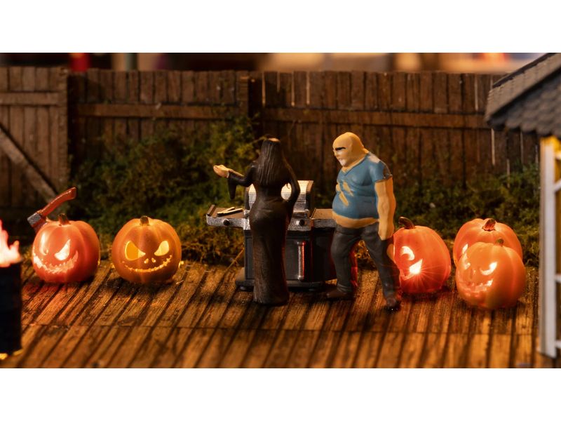 Balení obsahuje 5 ks, v každé dýni se nachází jedna LED dioda. Připojení je provedeno k modelovému železničnímu transformátoru 16V pro stejnosměrný i střídavý proud. Nevhodné pro děti do 15 let.