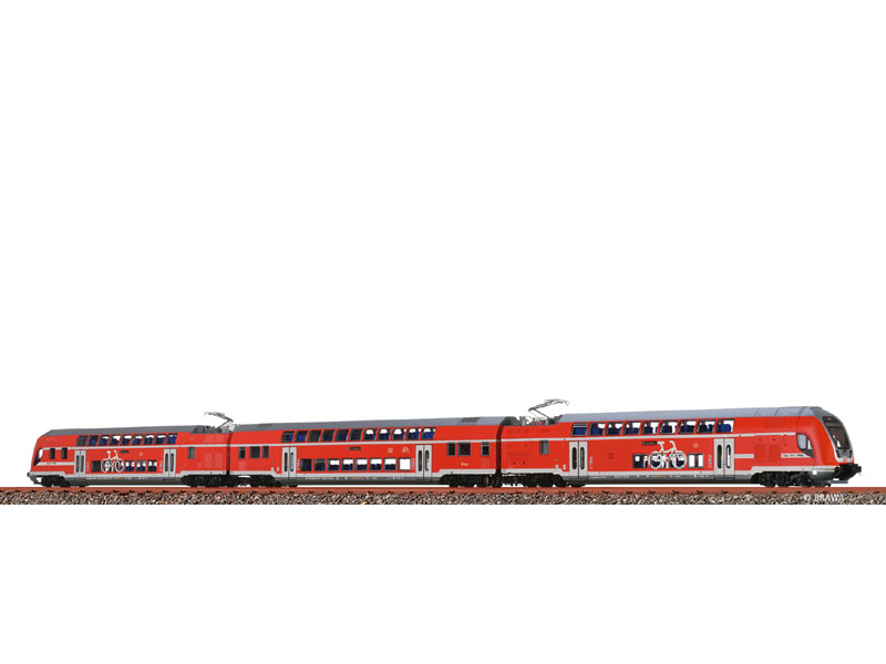 Elektrická patrová jednotka TWINDEXX Vario®, skládající se ze dvou hnacích a jednoho vloženého vozu 2. třídy. Přesné měřítko zmenšení 1:87. Přesná délka přes spřáhla Scharfenberg. Karoserie vyrobena z vysoce kvalitního, nárazuvzdorného plastu. Kovová základní deska. Potištěné okenní rámy. Přesně osazená okna. Osvětlené ukazatele cíle (digitální). Osvětlení s teplými bílými LED diodami. Osvětlená kabina strojvedoucího. Samostatně aplikované stěrače čelního skla. Věrně reprodukovaná trojrozměrná přední část. Vícedílné podvozky. Jemný potisk a lakování. Kompletní interiér včetně kabiny strojvedoucího. Kovové nápravy. TrainBUS: Automatická detekce čelního a zadního vozidla soupravy, ovládání a programování všech funkcí, detekce brzdných úseků (pouze v digitálním provozu). Vestavěné vnitřní vybavení. Tříbodové čelní osvětlení a dvě koncová červená světla, měnící se v závislosti na směru jízdy. Kinematika krátkého spřáhla s šachtou dle NEM. Minimální poloměr oblouku 360 mm. Provozní číslo 91 80 0 445 004-8 / 50 80 26-81 483-2 / 91 80 0 445 008-9. TWINDEXX VARIO® je chráněná obchodní značka. Nevhodné pro děti do 14 let.