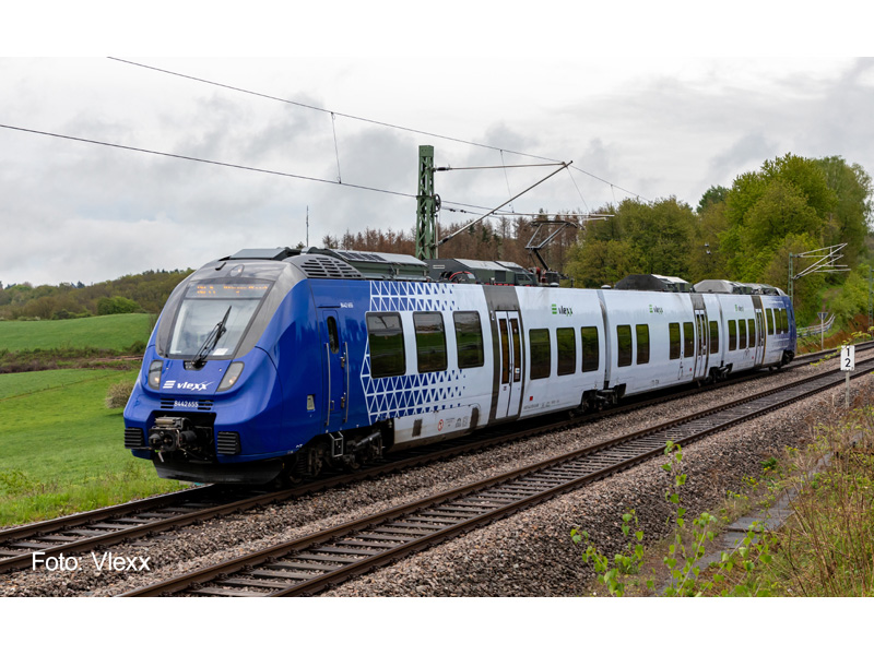 Třídílná elektrická motorová jednotka Talent 2 v designu Vlexx. Možnost snadné instalace digitálního dekodéru a zvukového modulu k.č.46190. Velmi detailní model, vynikající jízdní vlastnosti. Čelní a koncové osvětlení měnící se v závislosti na směru jízdy. Bez kinematiky krátkého spřáhla. Minimální poloměr oblouku 228 mm. Není vhodné pro děti do 14 let.
