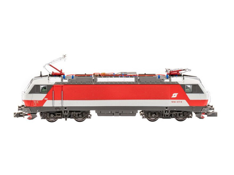 Elektrická lokomotiva 1014.017 ÖBB v provedení s velkým logem. Osvětlení LED, měnící se v závislosti na směru jízdy. Minimální poloměr oblouku 225 mm. Není vhodné pro děti do 14 let.