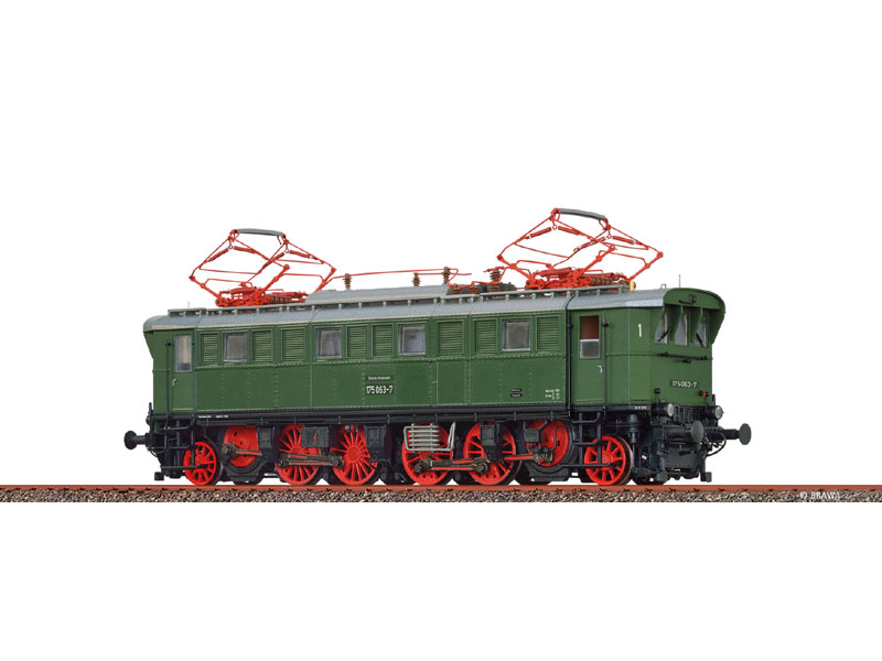 Tenká, dodatečně montovaná madla. Tříbodové zavěšení kol. Detailní podvozek. Jemný tisk a lakování. Funkční pantografy (mechanické). Rekonstruovaný interiér strojovny. LED osvětlení. Kovový rám a kola. Věrné, vícedílné střešní vybavení přesně dle předlohy. Snadná údržba díky jednoduché demontáži karoserie. Domazávání ložisek motoru a šnekových převodů je možné otvory v desce plošných spojů a krytu převodovky nebo z boku po demontáži karoserie. Motor se setrvačníkem. Tříbodové čelní osvětlení a dvě koncová červená světla, měnící se v závislosti na směru jízdy. Kinematika krátkého spřáhla s šachtou dle NEM. Minimální poloměr oblouku 360 mm. Provozní číslo 175 063-7 BD München; Bw Ingolstadt. Nevhodné pro děti do 14 let.