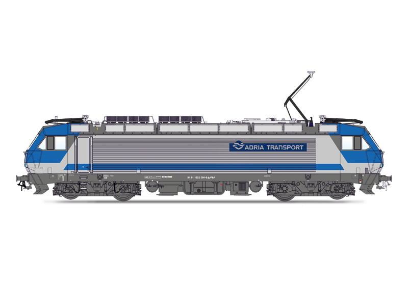 Model elektrické lokomotivy 1822.004 Adria. Možnost dálkových světel. Světla závislá na směru jízdy. Vypínatelná koncová světla. Minimální poloměr oblouku 358 mm.