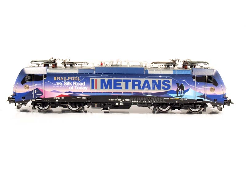 Metrans je jedním z předních evropských poskytovatelů intermodální kontejnerové dopravy v námořní a vnitrozemské dopravě a je jedním z průkopníků rychle rostoucí železniční dopravy po nové Hedvábné stezce. Loni Metrans zdvojnásobil počet kontejnerových vlaků jezdících mezi Evropou a Čínou. U příležitosti desetileté spolupráce s firmou Railpool se nedávno dodaná lokomotiva 186 534 (TRAXX F140 MS) představila ve speciálním provedení. Pod heslem „Hedvábná stezka dnes“ zahrnuje design prvky Hedvábné stezky historické i nové. Lokomotiva s tímto designem je nasazována v mezinárodní nákladní dopravě. Model je vybaven řadou samostatných doplňků, některé jsou vyrobeny z leptaného plechu. Vestavěný digitální dekodér se zvukovým modulem. Kondenzátorový zásobník energie pro plynulé přejíždění výhybek a jiných problémových míst. Funkční osvětlení LED, měnící se v závislosti na směru jízdy. Dálkový reflektor. Minimální poloměr oblouku R2. Provozní číslo 186 534-4. Kinematika krátkého spřáhla se šachtou dle NEM. Určeno pro modeláře a sběratele starší 14 let.