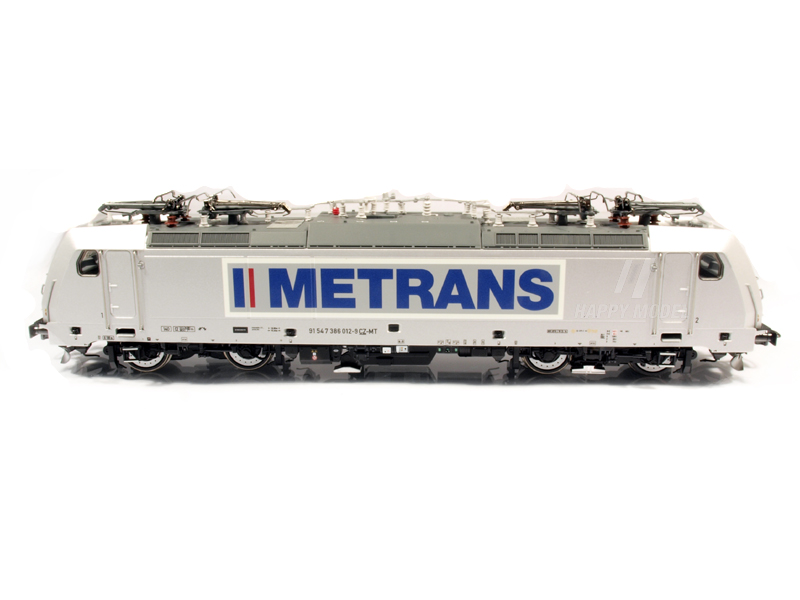 Elektrická lokomotiva Metrans 386 012. Model vybaven digitálním dekodérem se zvukovým modulem. S mnoha samostatně připojenými zásuvnými díly, některé vyrobené technologií leptání. Při přeshraničním použití pro nákladní vlaky, zejména kontejnerové. V digitálním provozu s přepínatelnými dálkovými světly a individuálně zapínatelnými světlomety nebo zadními světly. Motor se setrvačníkem. Osvětlení LED, měnící se se změnou směru jízdy. Kinematika krátkého spřáhla dle NEM. Provozní číslo 386 012-9. Minimální poloměr oblouku 358 mm. Není vhodné pro děti do 14 let.