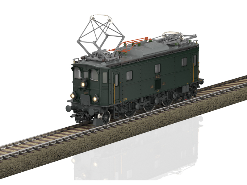Předloha: Elektrická lokomotiva typu Ae 3/5 Švýcarské federální železnice (SBB/CFF/FFS). S čelními přechodovými plechy a signalizací protisměru nad horním světlometem. Základní barevné schéma jedlová zeleň s šedým podvozkem. Provozní číslo 10217. Provozní stav 2022. Model: S digitálním dekodérem a rozsáhlými světelnými a zvukovými funkcemi. Regulovaný vysoce výkonný pohon se setrvačníkem. Poháněna jedna náprava, trakční bandáže. Trojité světlomety a 1 bílé koncové světlo podle švýcarských předpisů, které se mění v závislosti na směru jízdy, budou fungovat v konvenčním provozu a lze je ovládat digitálně. Osvětlení lze přepnout na 1 červené zadní světlo při jízdě sólo. Signál protisměru lze samostatně digitálně přepínat. Světlomety na straně lokomotivy 2 a 1 lze samostatně digitálně vypnout. Funkce dvojitého světla A. Dodatečné osvětlení kabiny strojvedoucího, osvětlení pultu strojvedoucího, blikání na rozvaděči a osvětlení strojovny lze ovládat samostatně digitálně. Osvětlení bezúdržbovými teplými bílými a červenými světelnými diodami (LED). S energetickou vyrovnávací pamětí. Vysoce detailní kovový design s mnoha samostatně aplikovanými detaily. Replika kabiny řidiče a strojovny. Detailní vybavení střechy se střešními kabely, izolátory a střešními lávkami a také pantografy. Minimální průjezdný rádius 360 mm. Brzdové hadice a imitace šroubových spojek jsou součástí dodávky. Kinematika krátkého spřáhla podle NEM. Odpovídající osobní vozy naleznete v řadě Märklin H0 pod čísly položek 43363, 43373 a 43383. Není vhodné pro děti do 15 let.