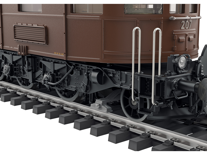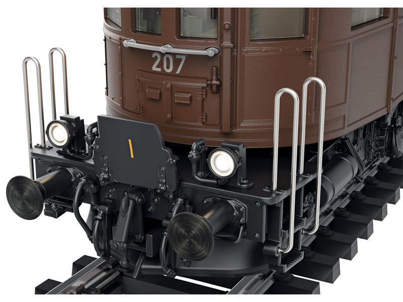 Předloha: Elektrická lokomotiva Ae 6/8 železnice Bern-Lötschberg-Simplon (BLS), provedení z 2. série. Tmavě hnědá základní barva s černým podvozkem. Verze v původním stavu se 2 pantografy a brzdnými odpory ve strojovně. S přechodovými plechy na čelech a signálem protisměrné jízdy. Provedení se čtyřmi okny strojovny a žaluziovými větracími mřížkami. Provozní číslo 207, stav z konce 40./začátku 50. let. Model: S digitálním dekodérem a rozsáhlými zvukovými a světelnými funkcemi. Regulovaný vysoce výkonný pohon se setrvačníkem, centrálně instalovaný. Obě vnější hnací dvojkolí v každém podvozku jsou poháněny přes kardanovou hřídel. Bandáže. Trojitý přední světlomet a 1 bílé koncové světlo podle švýcarských předpisů, měnící se v závislosti na směru jízdy, v konvenčním provozu, digitálně přepínatelné. Osvětlení lze přepnout na 1 červené zadní světlo při jízdě sólo. Signál protisměru lze samostatně digitálně přepínat. Světlomety na straně lokomotivy 2 a 1 lze samostatně digitálně vypnout. Funkce dvojitého světla A. Osvětlení kabiny strojvedoucího, ovládacích pultů a strojovny lze samostatně digitálně spínat. Osvětlení bezúdržbovými teplými bílými a červenými světelnými diodami (LED). Energetický zásobník energie pro plynulou jízdu. Vysoce detailní kovová konstrukce s mnoha samostatně připojenými detaily. Minimální pojízdný rádius 360 mm. Brzdové hadice a imitace šroubovek jsou součástí dodávky. Kinematika krátkého spřáhla s šachtou de NEM. Není určeno pro děti do 15 let.