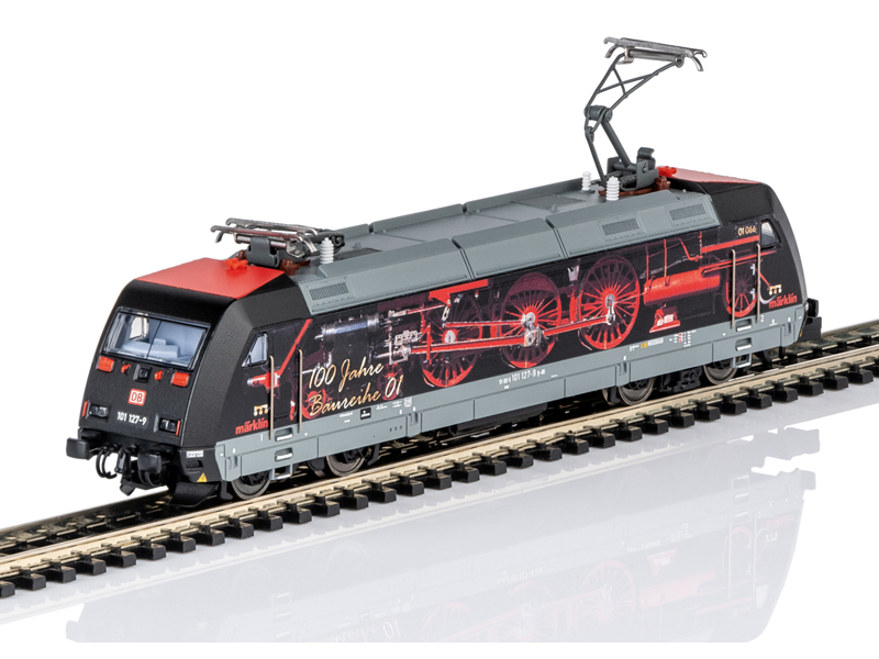 Předloha: Rychlíková lokomotiva řady 101 Německých spolkových drah (DB AG). Reklamní potisk k 100. výročí řady 01. Číslo lokomotivy 101 127-9. Aktuální provozní stav 2025. Model: Podvozek a karoserie lokomotivy z kovu. Vestavěný digitální dekodér a generátor zvuku pro provoz s mfx a DCC. Motor se setrvačníkem, poháněné 4 nápravy, trakční bandáže. Světlomety a zadní světla se mění podle směru jízdy, s teple bílými LED diodami, digitálně přepínatelné osvětlení kabiny. Kinematika krátkého spřáhla. Nevhodné pro děti do 15 let.