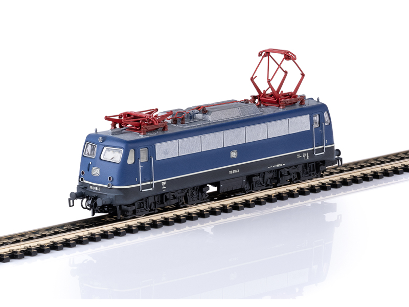 Předloha: Standardní elektrická lokomotiva 110 318-3 Německé spolkové dráhy (DB). Základní barva kobaltově modrá. Verze s dvojitými svítilnami, plastovými dešťovými žlaby nad předními okny a dveřmi kabiny řidiče, průběžným pásem ventilátoru ze sedmi dlouhými mřížkami ventilátoru a předními madly. Bez dolních krytů a bez obložení nárazníků. Stav kolem roku 1983. Použití: Nákladní a osobní vlaky pro místní a dálkovou dopravu. Model: Nový design. Skříň a rám z tlakově litého zinku. Vestavěný digitální dekodér a zvukový generátor pro provoz s mfx a DCC. Motor se setrvačníkem, poháněné 4 nápravy, bandáže. Přední a koncová světla z teplých bílých LED se mění se směrem jízdy, osvětlení kabiny strojvedoucího, digitálně přepínatelné. Dodatečně dosazená madla. Kinematika krátkého spřáhla s šachtou de NEM. Není určeno pro děti do 15 let.