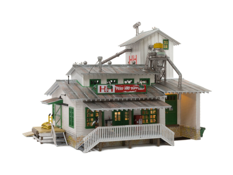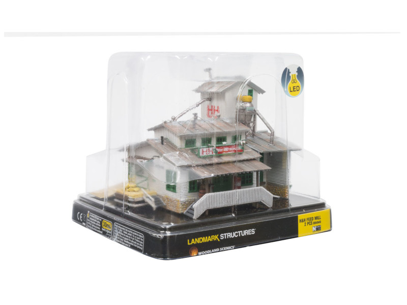 Hotový model fabriky na výrobu krmiv. Součástí balení je mnoho dekorativních doplňků. Vnitřní LED osvětlení. Rozměr: 10,7 x 9,36 cm, výška: 8,57 cm. Nevhodné pro děti do 14 let!