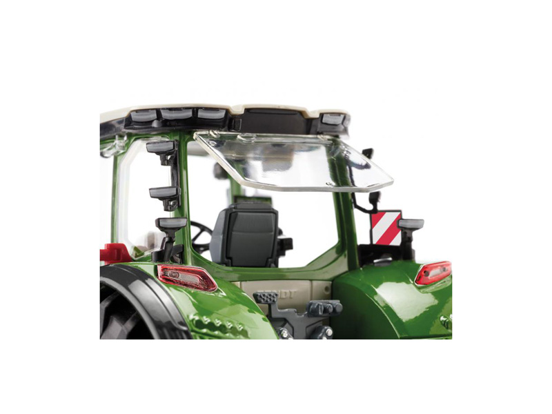 Model traktoru, vyrobený převážně z kovu, zaujme mimořádnou úrovní detailů a realistickým provedením. Autentické gumové pneumatiky, kyvná přední náprava a funkční přední i zadní závěs podtrhují věrnost skutečnému stroji značky Fendt. Kabina s pohyblivými dveřmi nabízí propracovaný interiér včetně sedadla řidiče s logem Fendt, multifunkční loketní opěrky a střešního displeje. Otevíratelná kapota odhaluje detailně zpracovaný motorový prostor, LED osvětlení a barevně odlišené hydraulické přípojky doplňují prémiový vzhled modelu. Sběratelský model. Není vhodné pro děti do 14 let.