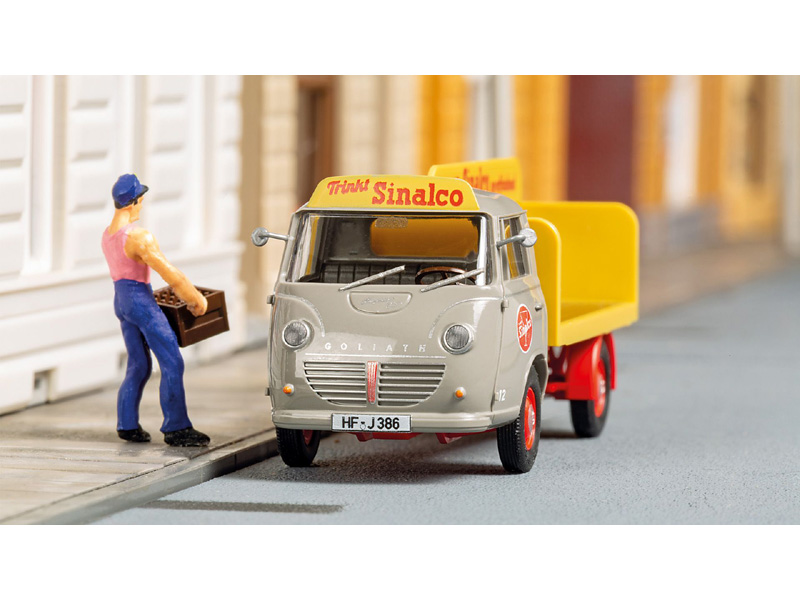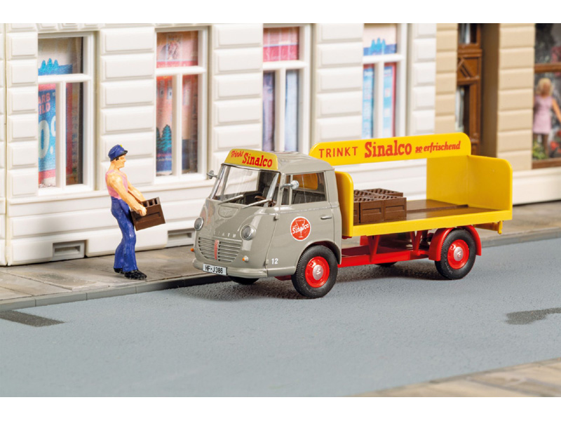 Nákladní vůz na nápoje Sinalco. Součástí balení jsou registrační značky a zpětná zrcátka pro svépomocnou montáž. Rozměry: 52,5 x 20,7 x 22 mm. Nevhodné pro děti do 14 let.