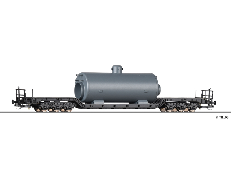 Hlubinový vůz SSt 49 DB, naložený parném kotlem. Kinematika krátkého spřáhla s šachtou dle NEM. Nevhodné pro děti do 14 let.