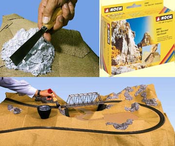 Po rozdělání s vodou vznikne hustá kaše, která se do 15 minut nanáší na místo budoucí skály, případně se s ní mohou “tmelit” mezery mezi skalními kusy. Při schnutí vytvoří hrbolatý povrch, který imituje povrch skály. Po zaschnutí je možno barvit. Obsah 400g. Vhodné pro všechny velikosti. Nevhodné pro děti do 15 let.