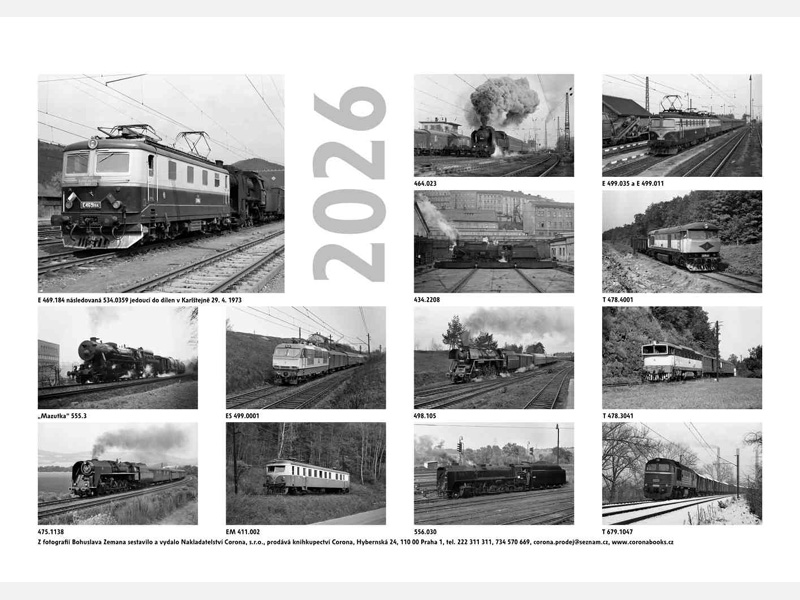 kalendář nástěnný 2026 – černobílý Lokomotivy Literatura kaln26par