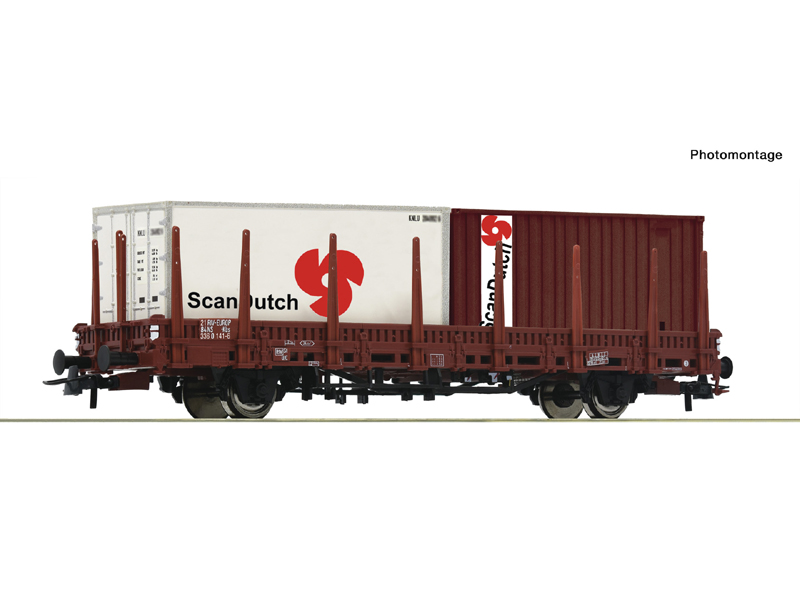Klanicový vůz typu Kls naložený dvěma kontejnery. Kinematika krátkého spřáhla dle NEM 362. Nejmenší poloměr oblouku 358 mm. Není vhodné pro děti do 14 let.