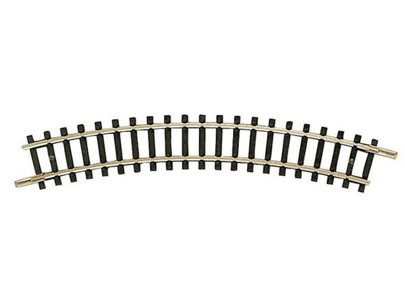 Oblouková kolej R1. Poloměr 194,6 mm, úhel oblouku 30°. Pro celý kruh je zapotřebí 12 kusů.
