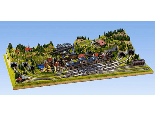Skelet krajiny kolejiště z plastu montovaný na stabilním dřevěném rámu. Ručně barvený, se základním zatravněním. Součástí dodávky jsou mosty, trasy pod koleje uvnitř tunelů, podrobný návod se seznamem doporučených budov a kolejiva pro všechny běžné kolejové systémy, DVD Rádce tvorby krajiny. Rozměry: 175 x 100 cm, výška 31 cm. Vhodné pro velikosti N,Z. Nevhodné pro děti do 15 let.