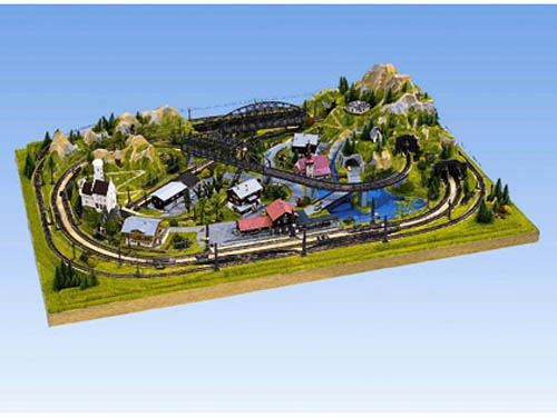 Skelet krajiny kolejiště z plastu montovaný na stabilním dřevěném rámu. Ručně barvený, se základním zatravněním. Součástí dodávky jsou mosty, trasy pod koleje uvnitř tunelů, podrobný návod se seznamem doporučených budov a kolejiva pro všechny běžné kolejové systémy, DVD Rádce tvorby krajiny. Rozměry: 100 x 69 cm, výška 21 cm. Vhodné pro velikosti Z. Nevhodné pro děti do 15 let.