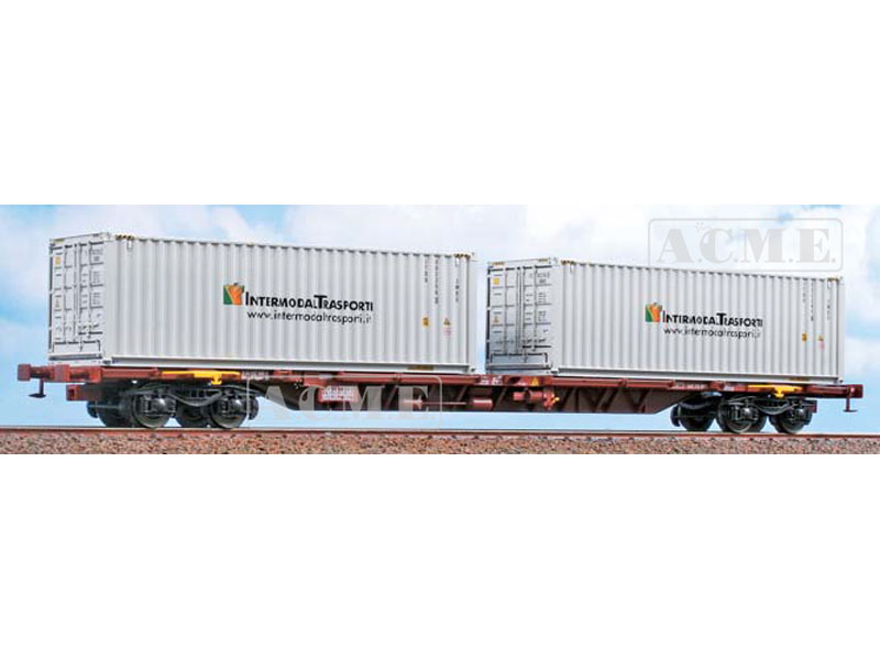 Kontejnerový vůz typ Sggnss 30 ložený dvěma kontejnery Intermodaltransporti. Nevhodné pro děti do 15 let.