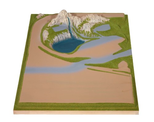 Skelet krajiny kolejiště z plastu montovaný na stabilním dřevěném rámu. Ručně barvený, se základním zatravněním. Součástí dodávky jsou mosty, trasy pod koleje uvnitř tunelů, podrobný návod se seznamem doporučených budov a kolejiva pro všechny běžné kolejové systémy. Určeno jako levý díl rozšíření kolejiště. Rozměry 69 x 100 cm, výška 16 cm. Vhodné pro velikosti N,Z. Nevhodné pro děti do 15 let.