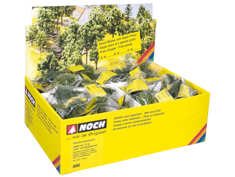 Balení obsahuje 50 x listnatý strom 8 cm, 50 x listnatý strom 10 cm. Vhodné pro velikost H0,TT,N. Nevhodné pro děti do 15 let.