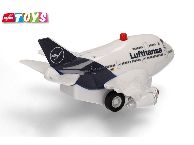 Aviation Toys Herpa – letecké hračky pro děti od 3 let. Plastové letadlo s natahovacím motorem, zvuky a blikajícími LED světly. Délka: 108 mm.