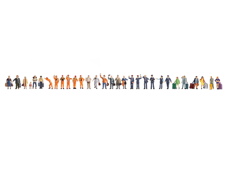 Mega set obsahuje 30 pečlivě detailních, ručně malovaných figurek: cestující se zavazadly, železniční zaměstnance. Není určeno pro děti do 14 let.