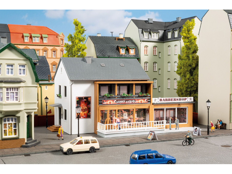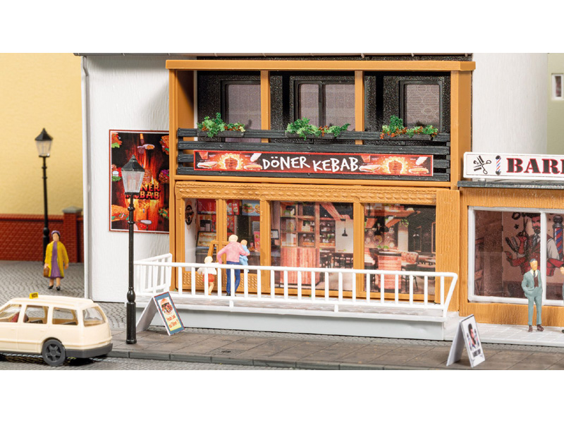Typická obytná budova v jejímž přízemí se nachází Döner Kebab a Barbershop. Rozměry: 180 x 95 x 88 mm. Nevhodné pro děti do 14 let.