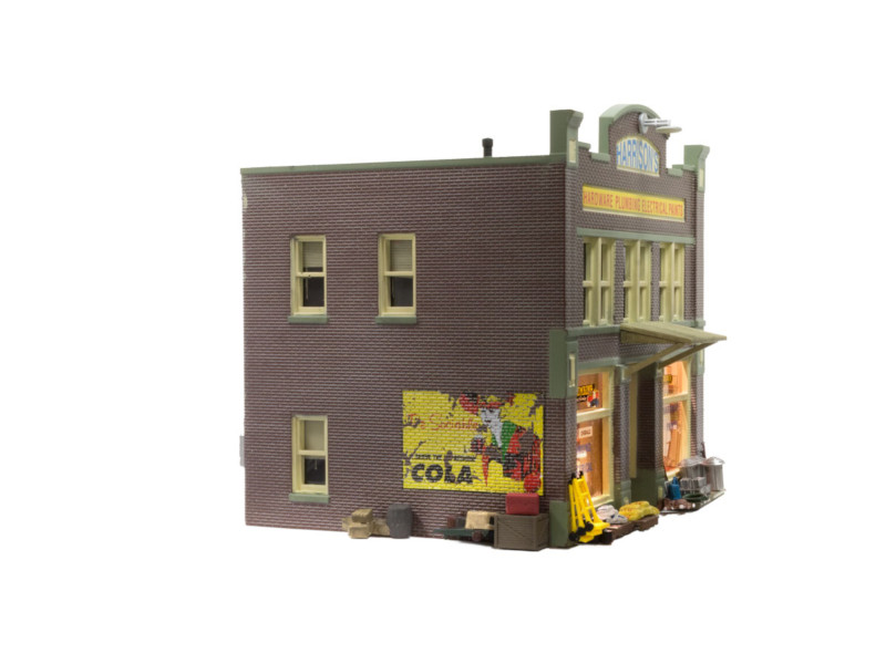 Hotový model městského domu, v jehož přízemí se nachází prodejna železářství. Součástí balení je mnoho dekorativních doplňků. Vnitřní LED osvětlení. Rozměr: 6,35 x 5,08 cm, výška: 6,35 cm. Nevhodné pro děti do 14 let!