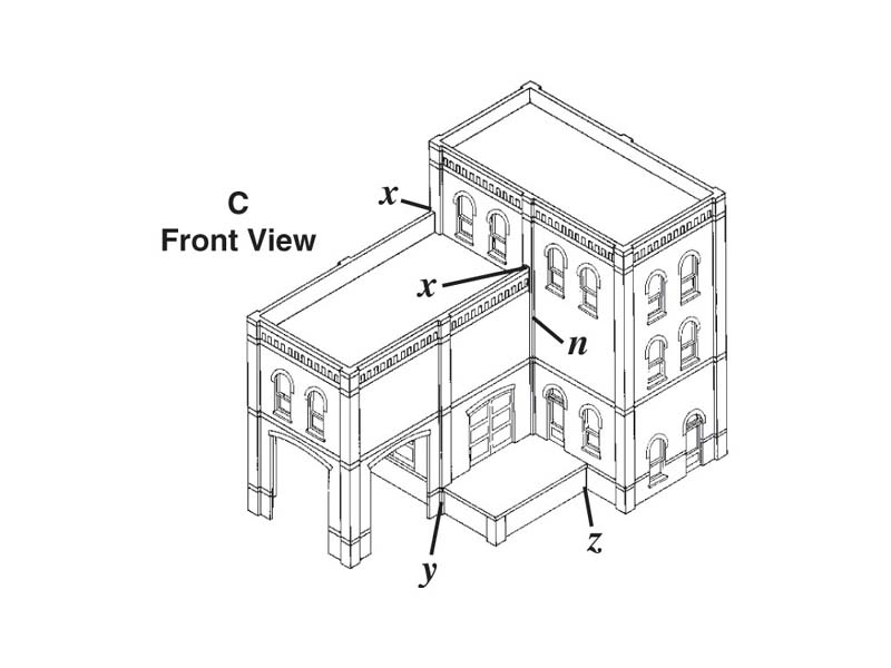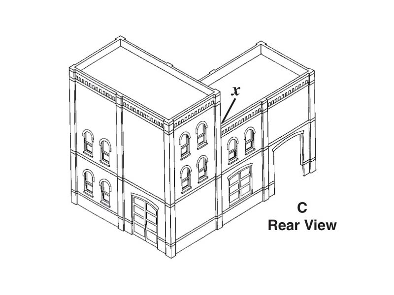 Postavte budovu o rozměrech cca 19 x 21,5 x 17,7 cm. Vhodné pro měřítka H0 (1:87) a 00 (1:75). Nevhodné pro děti do 15 let!