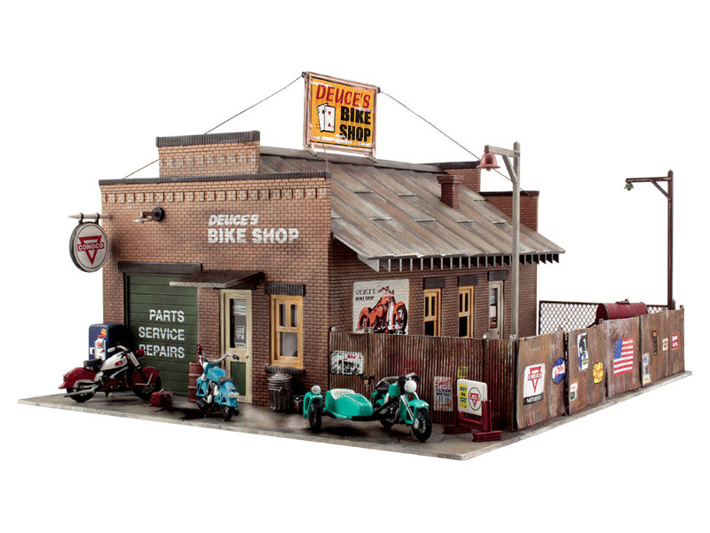 Stavebnice motorkářské prodejny. Součástí balení je mnoho dekorativních doplňků. Rozměr: 12,7 x 15,2 cm, výška: 8,89 cm. Nevhodné pro děti do 14 let!