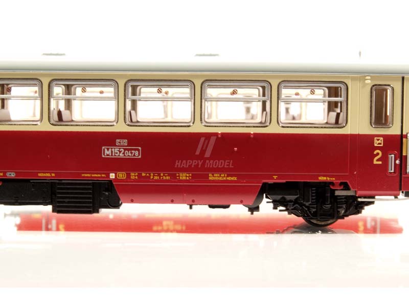 Za účelem náhrady zastaralých motorových vozů řady M 131.1 pořídily ČSD nové dvounápravové motorové vozy se sériovým označením M 152.0. Sériová vozidla dodávaná od roku 1975 byla poháněna řadovým šestiválcem o výkonu 155 kW a dosahovala maximální rychlosti 80 km/h. V prostoru pro cestující bylo k dispozici 56 míst. Digitální provedení s pevně vestavěným dekodérem v motorovém voze a funkčním dekodérem v přípojném voze. Kondenzátorový zásobník energie pro plynulé přejíždění výhybek a jiných problémových míst. K modelu jsou přiloženy uzavřené pluhy. Samostatně připevněné stěrače čelního skla. Motor se setrvačníkem. Funkční osvětlení LED, měnící se v závislosti na směru jízdy. Vestavěné vnitřní osvětlení. Kinematika krátkého spřáhla se šachtou dle NEM. Minimální poloměr oblouku R2. Určeno pro modeláře a sběratele starší 14 let.