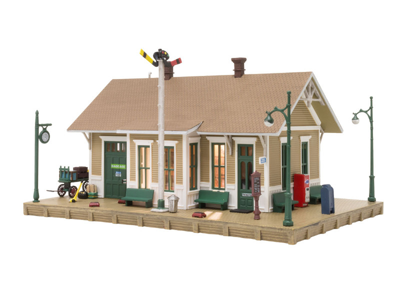 Hotový model malého nádraží Dansbury. Součástí balení je mnoho dekorativních doplňků. Vnitřní LED osvětlení. Rozměr: 19 x 14,1 cm, výška: 10,1 cm. Nevhodné pro děti do 14 let!