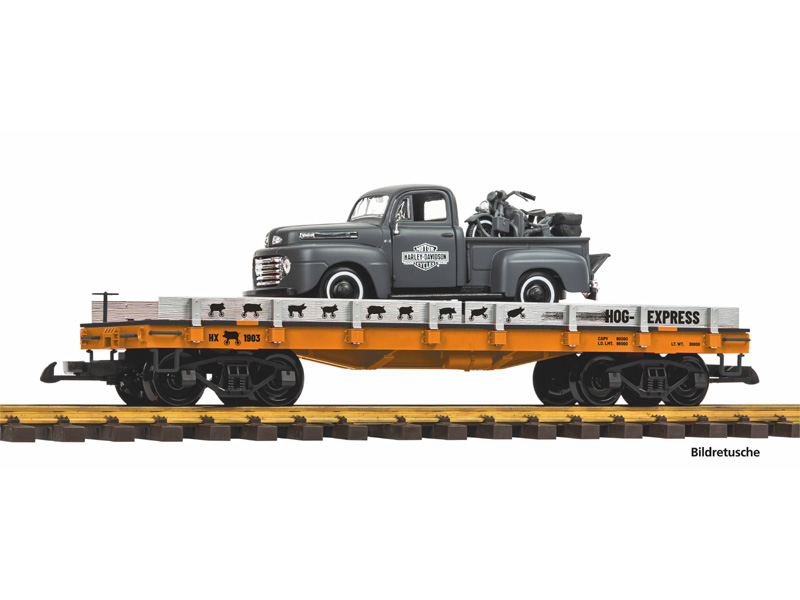 Nákladní vůz FLSTS s naloženým automobilem Chevrolet 310 PickUp. Robustní konstrukce, vynikající jízdní vlastnosti. Minimální poloměr oblouku 600 mm. Není vhodné pro děti do 14 let.