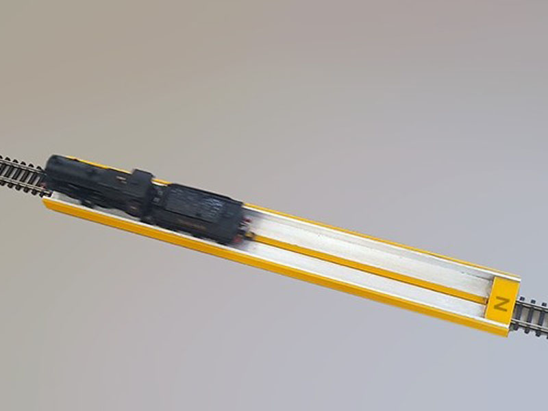 Další skvělý nástroj, jak ukončit své výzvy a snadno nasadit dlouhé lokomotivy a vagóny na koleje. Hliníková základna je napájena z kolejí, na které je nakolejovadlo položeno, a umožňuje lokomotivě sjet na kolej plynule a správně. Oba konce jsou stejné a umožňují tak sjetí na libovolnou stranu. Délka základny: 23cm.