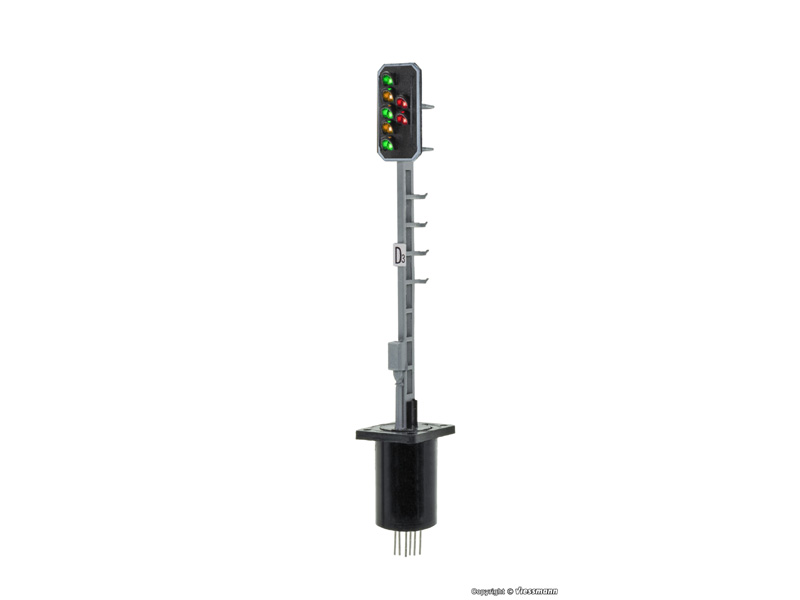 Švýcarská světelná návěstidla typu L patří mezi klasické světelné signály používané ve švýcarském železničním provozu a vyznačují se kompaktním designem a jasnými, snadno rozpoznatelnými indikátory. Jemný mosazný stožár je vyroben technikou fotoleptání. Autentická lakovaná povrchová úprava. Vhodné pro všechny analogové i digitální systémy. Bezúdržbové díky LED osvětlení. Snadná instalace a připojení pomocí válcové zásuvné základny. Výška: 7 cm. Není vhodné pro děti do 14 let.