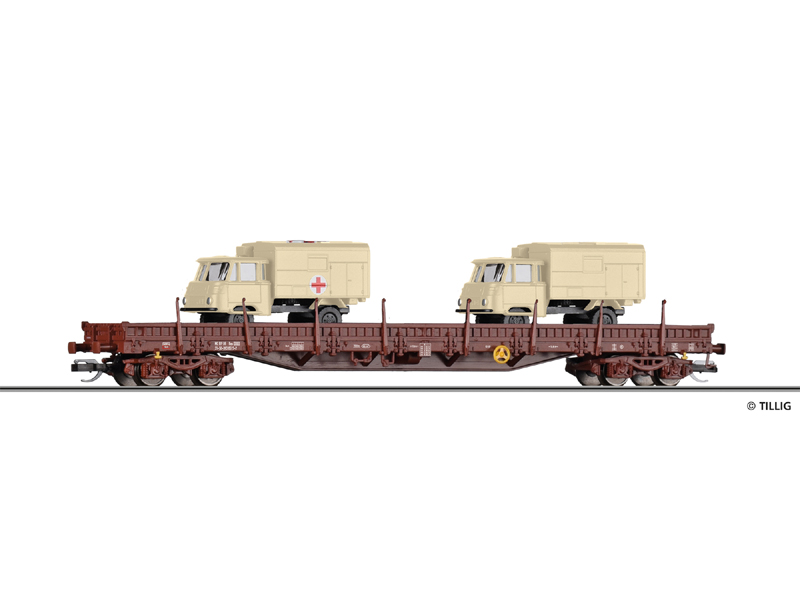 Nízkostěnný vůz Res 3936 DR je ložený dvěma nákladními auty Robur 1801 v exportním provedení. Kinematika krátkého spřáhla s šachtou dle NEM. Nevhodné pro děti do 14 let.